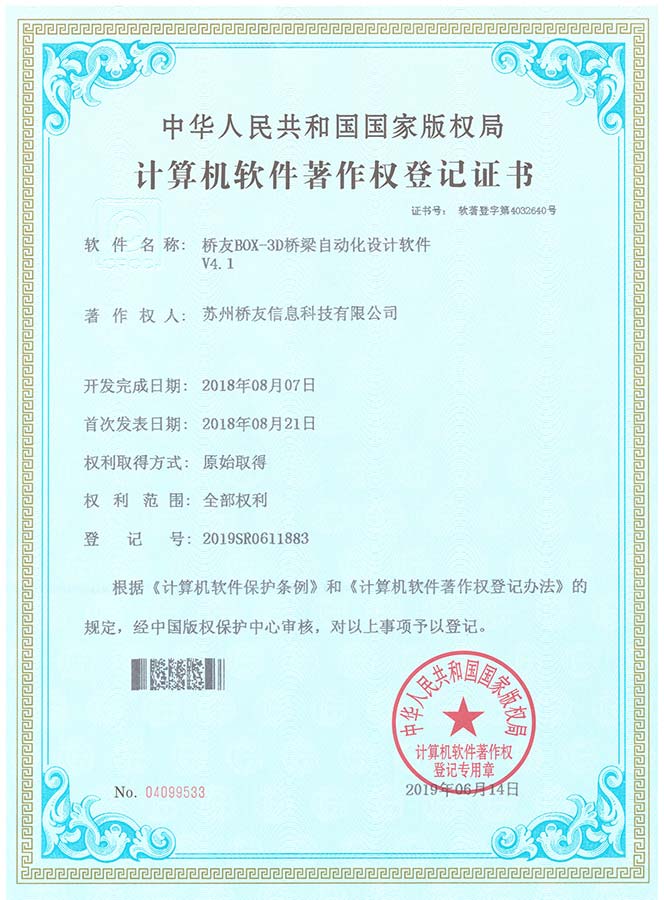 - 公司简介 苏州桥友信息科技有限公司成立于2017年,是基础建设行业内一家集信息化技术研发与工程技术服务为一身的高新技术企业。主营业务涵盖路、桥等多方向的软件研发与定制、工程设计与咨询等。自主研发的多款数字化智能化产品在行业内广泛应用,如有完全自主知识产权的BOX-3D桥梁绘图软件,在市场上受到很高的评价,国内土木行业很多领先企业的都成为软件用户。
