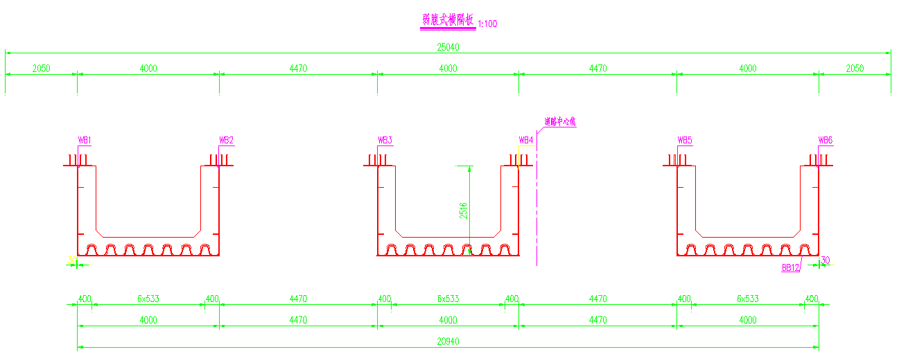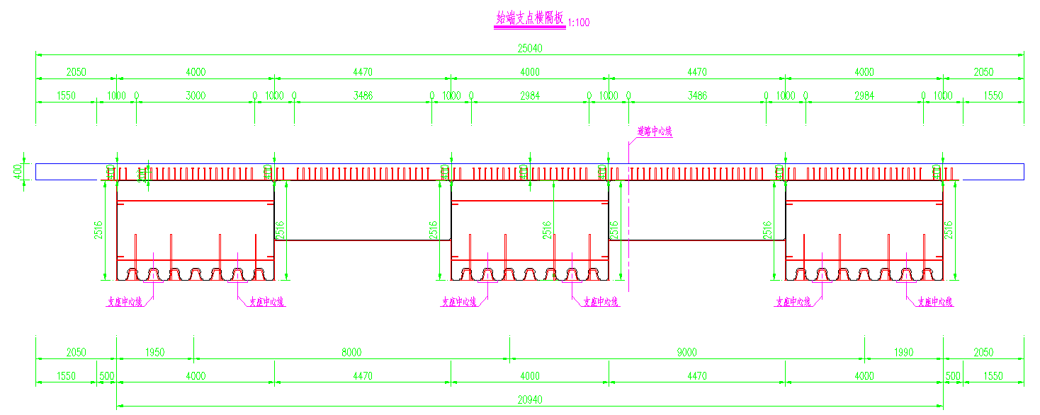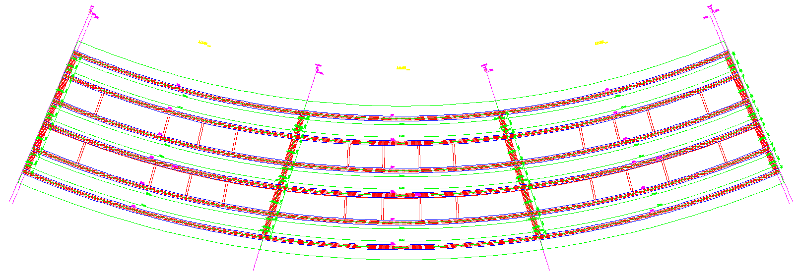 槽型钢混叠合梁模块支持等高、变高、等宽、变宽、弯桥、斜桥、超高等工况;支持立面图、平面图、横断面图绘制,工程量计算。支持钢结构部分的断面绘制,剖面绘制。混凝土部分的构造平面、断面与钢筋平面与断面图绘制,工程量计算等。下图为软件绘制的几个图例。
